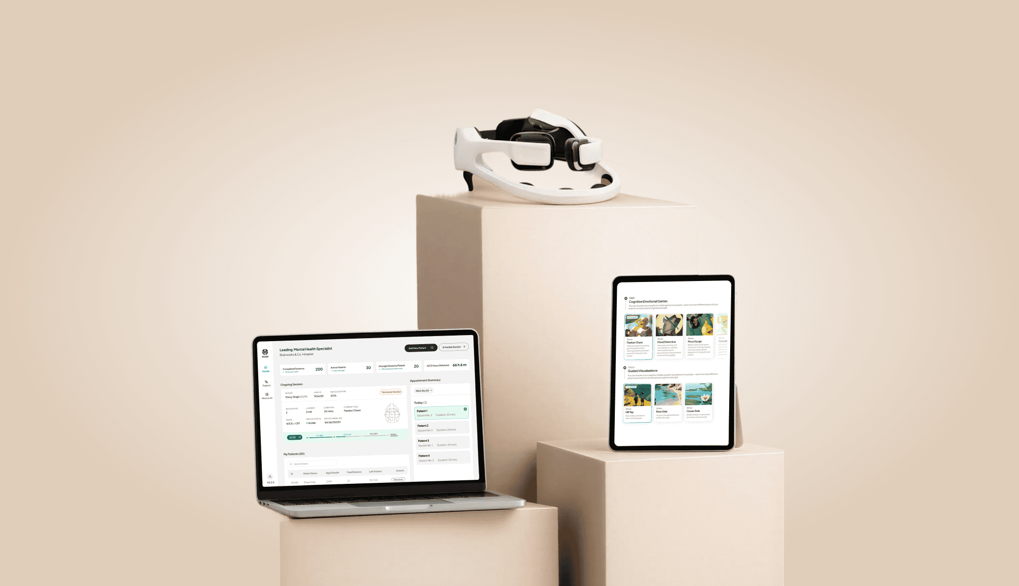 Flow Neuroscience is the global D2C leader in tDCS. Their device received FDA approval in late 2025 for at-home depression treatment, the first such approval in the US. Flow is CE-certified, integrated into multiple NHS trusts in the UK, and has treated 55,000+ patients globally. Their strength is clinical credibility for depression and an excellent app-guided therapy programme. Their limitation: they treat depression only, have no EEG integration, offer limited CET, and are a consumer product rather than a clinician-supervised clinical tool.